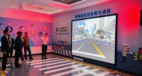 模擬闖紅燈危險(xiǎn)互動(dòng)區(qū)設(shè)置了真實(shí)的信號燈,當(dāng)信號燈為綠色時(shí),參觀者可以正常通行,但當(dāng)信號燈為紅色時(shí),系統(tǒng)檢測到有行人通過時(shí),畫面將呈現(xiàn)慘烈碰撞場景并伴有車輛緊急剎車聲效,讓參觀者切身體驗(yàn)到闖紅燈的危害,特別對于當(dāng)前的手機(jī)低頭一族,大家需時(shí)刻保持文明交通安全的觀念。