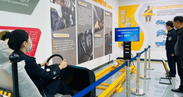 駕駛位置安全帶機(jī)構(gòu)和虛擬場景的模擬重現(xiàn),通過滑軌加速度模擬真實(shí)的撞擊感受,模擬安全氣囊正常打開,從而起到保護(hù)作用。讓參觀者真實(shí)體驗(yàn)到安全帶在駕駛過程中的重要作用及不系安全帶的危害。